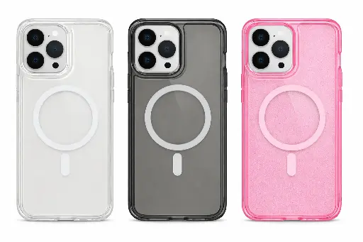 Cover Symmetry Clear con MagSafe para iPhone – Case Transparente Antigolpes Compatible MagSafe | Panamá (15promax, ROSADO) – Modelo: 15promax, Colores: ROSADO