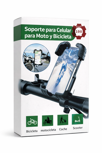 Holder Soporte para moto, bicicleta, scooter, en volante timon, 4 esquinas resistente, full ajustable, con seguro anticaida